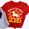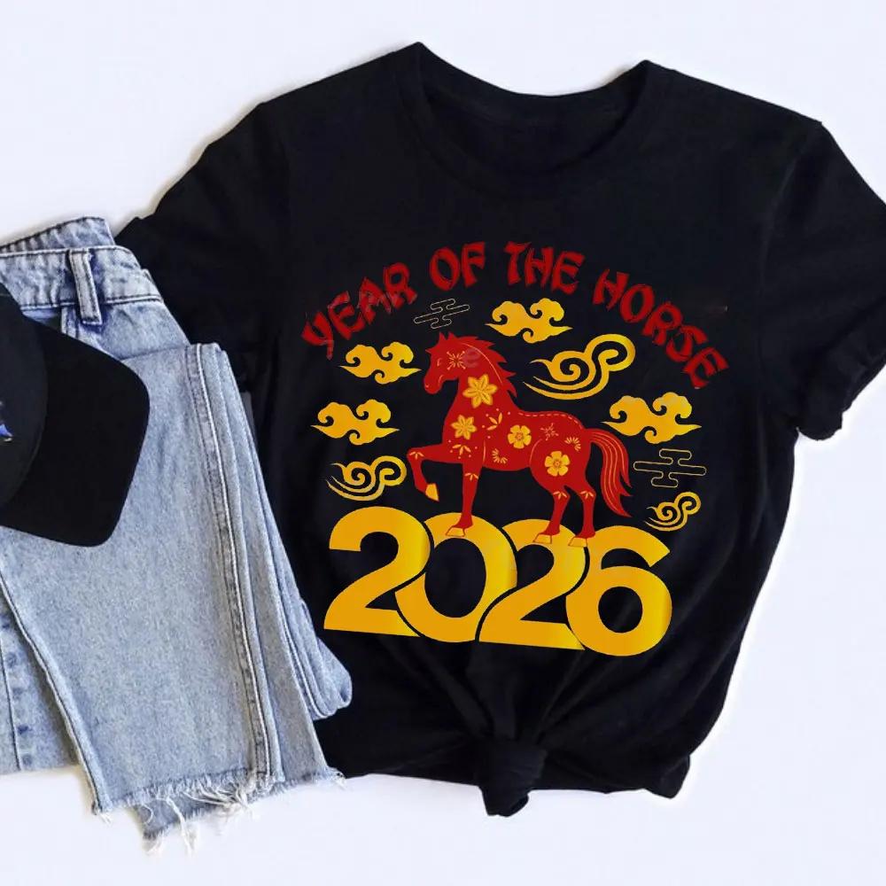 Women's Year of the Horse 2026 Short Sleeve T-Shirt Lunar New Year Chinese Sweatshirt Cotton Tshirt for Festive Occasions