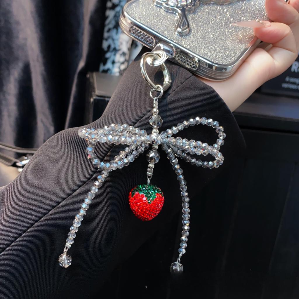 Phone Pendant Crystal Bowknot Rhinestone Strawberry Pendant Bag Pendant Car Keychain High-end Hanging Chain