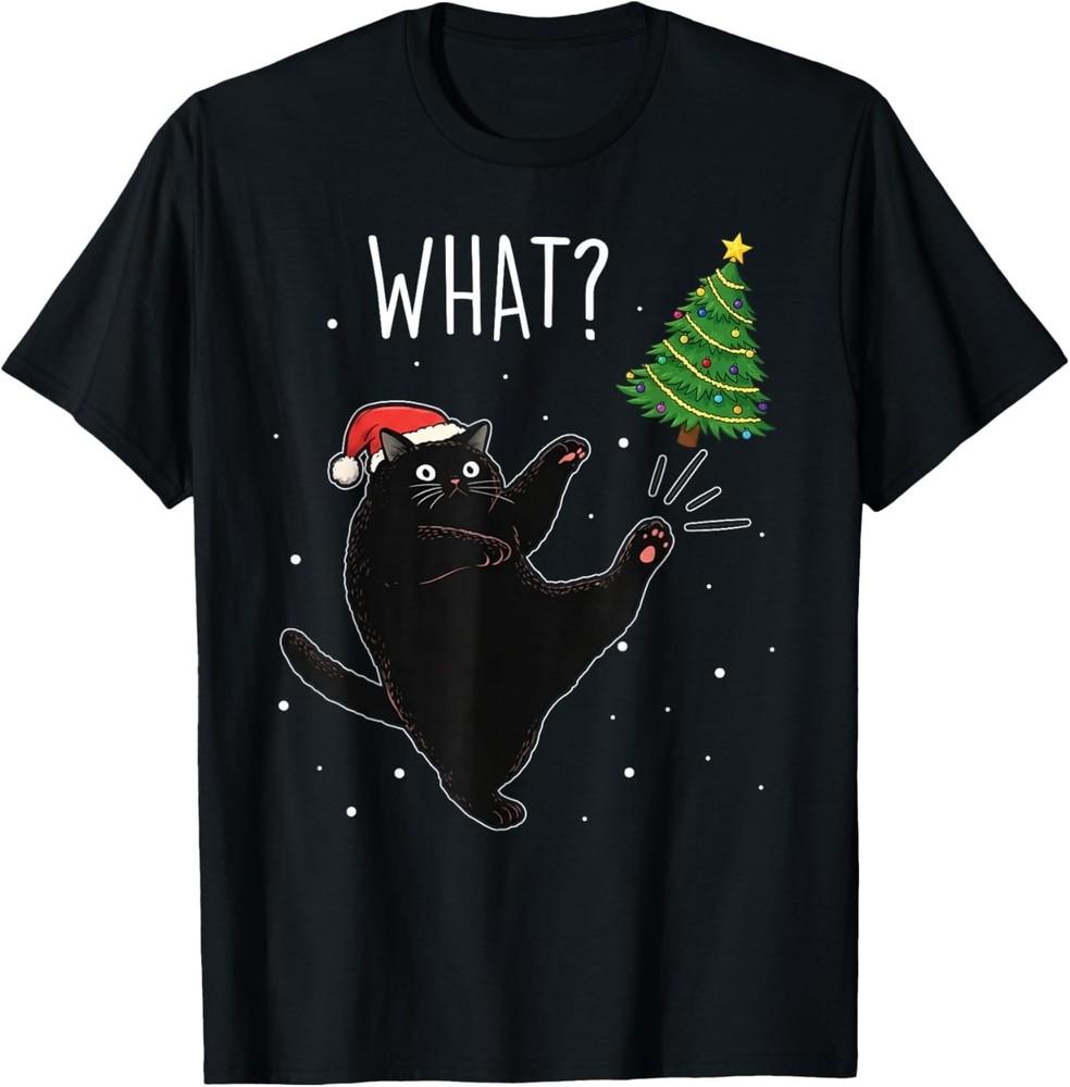 Zabawny Czarny Kot Co? Meme Choinka Boże Narodzenie Mężczyźni Kobiety Koszulka