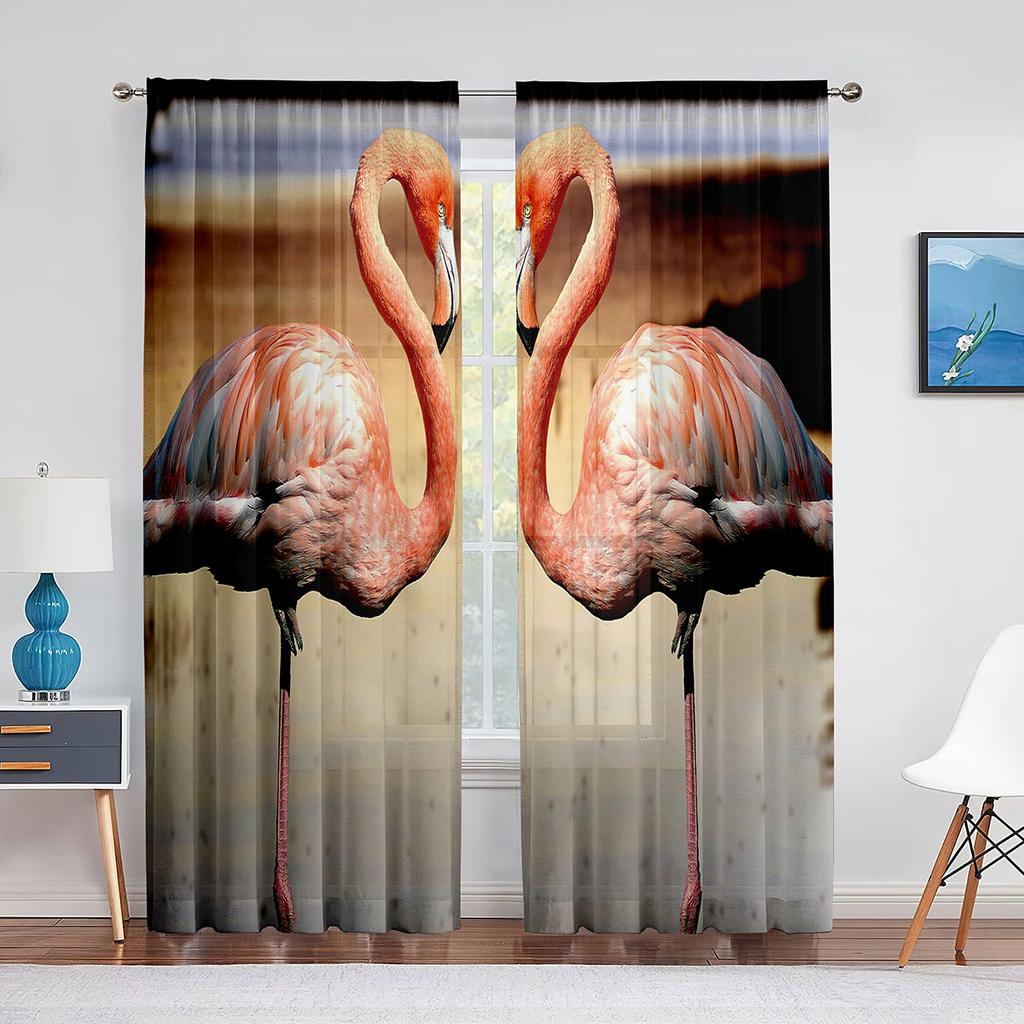 Różowe flamingi tropikalne ptaki romantyczna miłość przezroczyste firanki z woalu do salonu tiulowa firana okienna do sypialni i kuchni