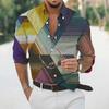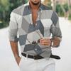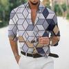 2025 Geometric Three-dimensional 3D Printed Casual Lapel Long-sleeved Shirt Spring and Autumn Men's Trendy Versatile Shirt for Men