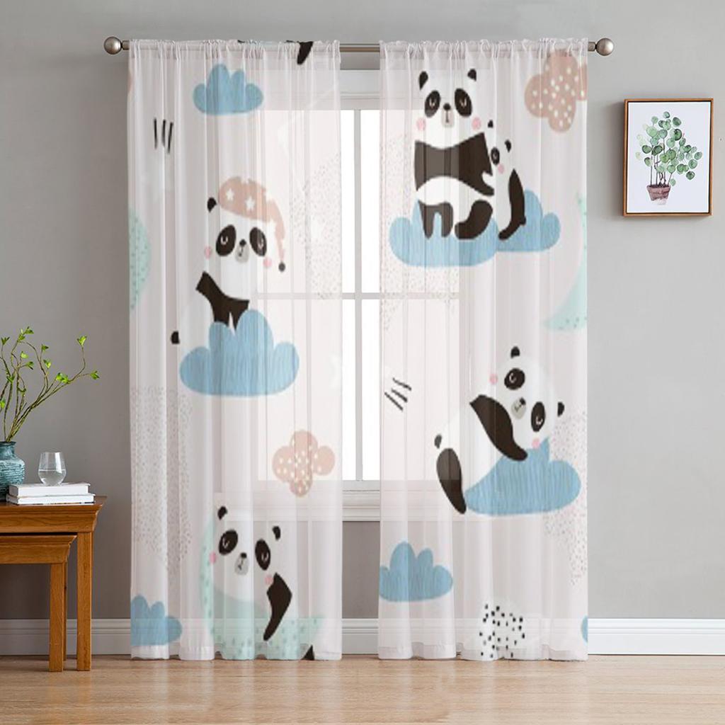 Urocze Śpiące Pandy Księżyc Tęcze Chmury Szyfonowe Przezroczyste Zasłony do Dekoracji Salonu Sypialni Okienne Woale Tiulowa Zasłona