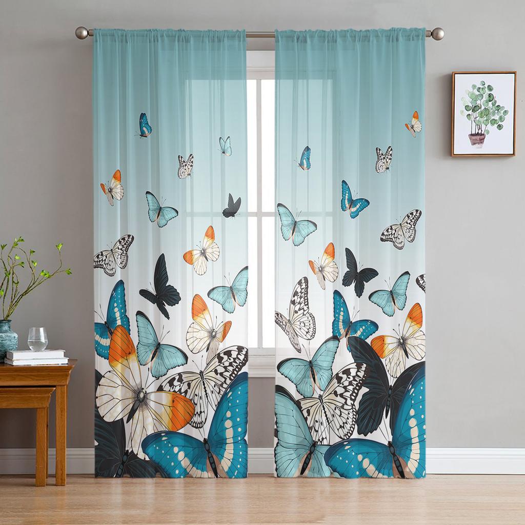 Duszpasterska motylkowa kaczka wodna zielona gradientowa przezroczyste zasłony sypialnia salon woalowe zasłony okienne tiulowe zasłony dziecięce pokój