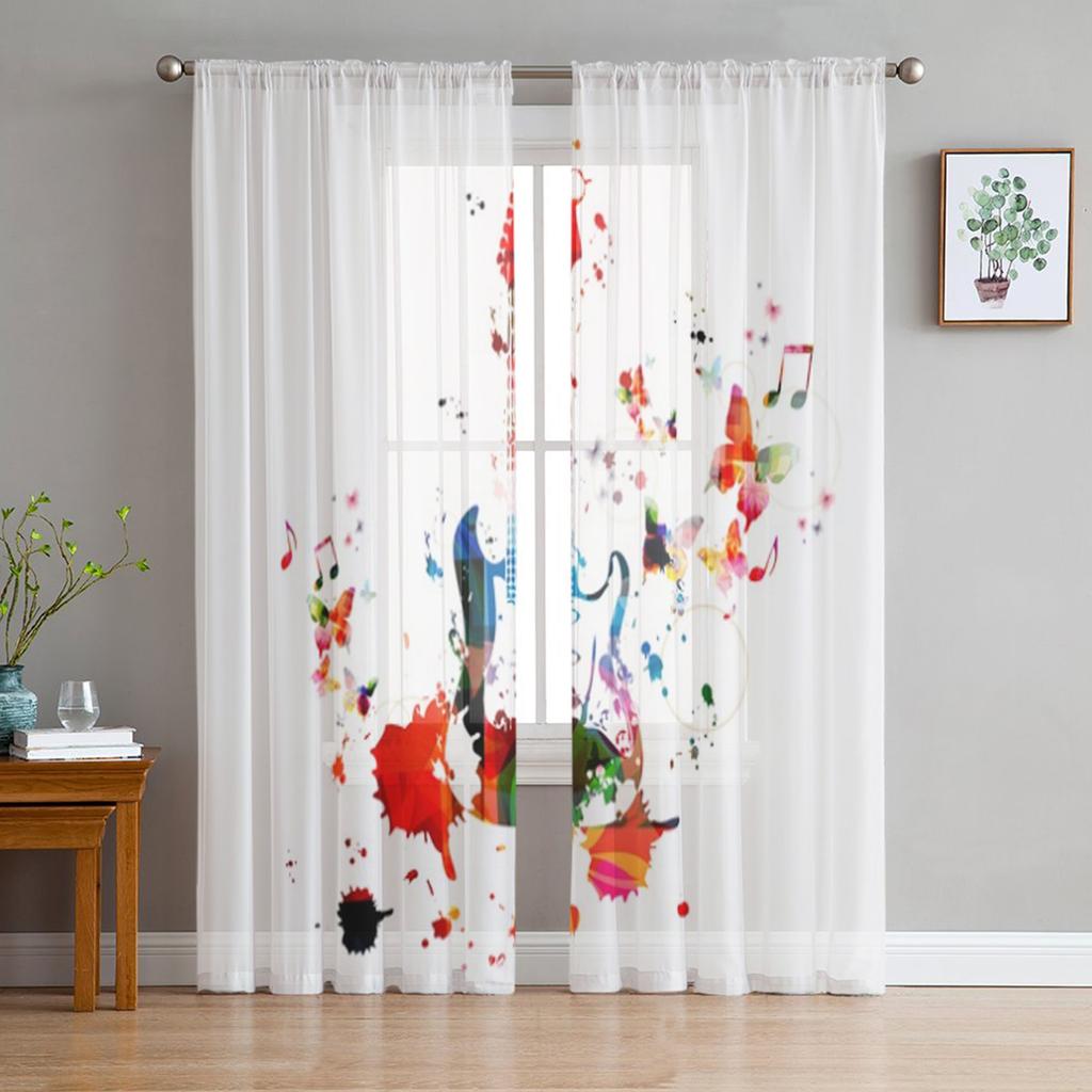 Kolorowa muzyka gitara przezroczyste zasłony do salonu przezroczysty tiul zabiegi okienne sypialnia kuchnia Home Decor welon zasłony