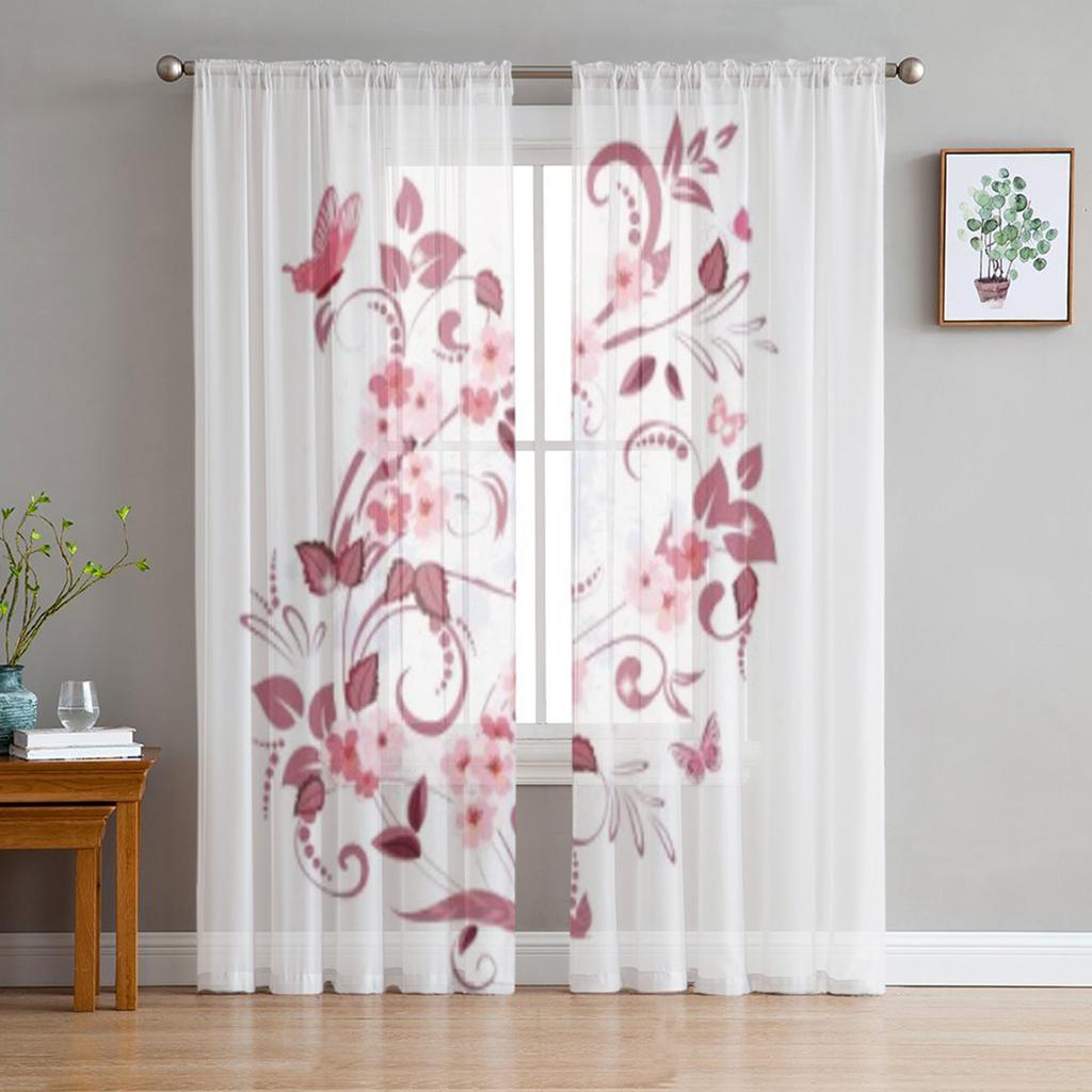 Vintageowe Kwiatowe Przezroczyste Zasłony do Salonu Przezroczysty Tiul Dekoracje Okienne Sypialnia Kuchnia Wystrój Domu Woal Zasłony