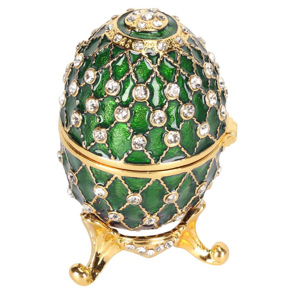Pudełko na drobiazgi w kształcie jajka, stop cynku, błyszczący kryształ górski, wykwintne, eleganckie metalowe pudełko na biżuterię do przechowywania w domu, biurze, zielone