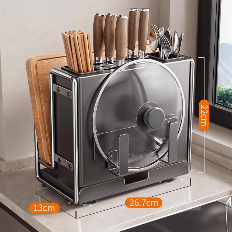 Gun Grey Magnetic Kitchen Storage Rack with Knife and Pot Lid Holder
