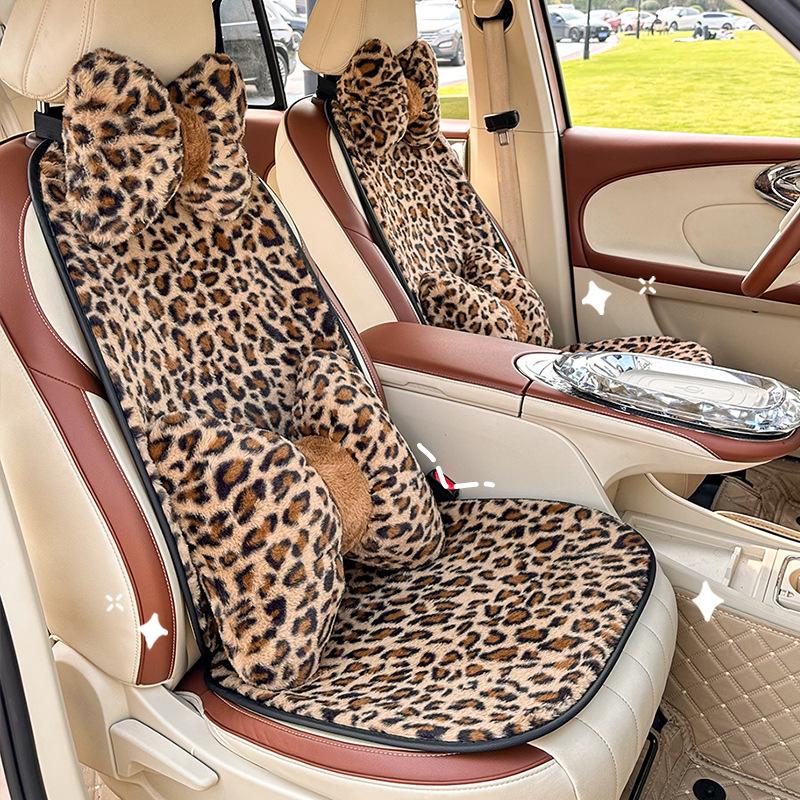 Leopard Print Car Seat Cushion Soft Plush Leopard Cover Winter Fluffy Warm Seat Supports Lumbar Support Pillow Car Seat Pillow