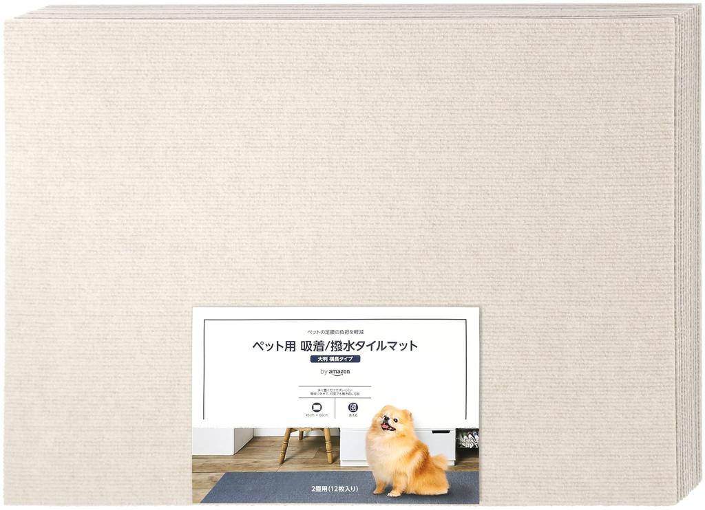 - Do not use on solid wood floors, tatami mats, or carpets. Do not use on damaged or aging floors. Remove the mat approximately once a month to allow the underside to air out. After removing the mat, the floor may become slippery. If this occurs, wipe it off with a rag using a mild alkaline detergent or diluted alkaline detergent. (If the underside of the mat adheres to the floor, wipe it off with a rag soaked in hot water.) If you use indoor shoes with non-slip soles, the corners of the mat may curl up. If this occurs, replace the mat in a position that does not interfere with walking, or cut the corners round with scissors. The color of tile mats may appear different depending on the orientation. If the white stripes on the underside appear different even when they are aligned in the same direction, turn the mat upside down (rotate it 180 degrees) and lay it again so the stripes line up. If you use vegetable soap, bar soap, or pure soap to wash the mat, be sure to rinse thoroughly. Do not use bleach or fabric softener. ・You can wash it in a drum-type washing machine, but please use the gentle cycle (hand wash mode) and place it in a laundry net to prevent wrinkles, deformation, and shrinkage. (Never use a dryer.) ・The water-repellent finish is not waterproof, so if left for a long time or depending on the usage conditions, water may seep in. Wipe it off as soon as it gets wet. ・Chemical ingredients such as deodorizing and disinfecting sprays may weaken the water-repellent effect. If the product becomes dirty, wash it before use. ・After washing, allow it to dry thoroughly before use. The adhesive part on the back may peel off if it contains moisture. ・The adhesive power may weaken in cold temperatures (below 5°C). ・Due to the characteristics of the material, it may shrink slightly after washing. ・Do not place it near fire or in high temperature locations. ・Do not use it for any purpose other than its intended use. 45x60cm interlocking mats. Large, horizontally long (45x60cm) mats for 1 tatami mat (12 mats). Made in Japan. Adhesive backing for easy installation and removal. Amazon brand.