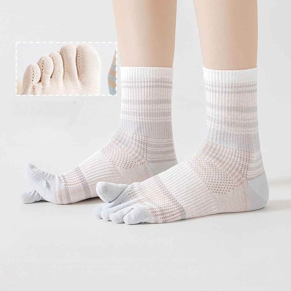 Breathable Mid-calf Socks Cotton Split Toe Socks Patchwork Five Toe Tube Socks Summer