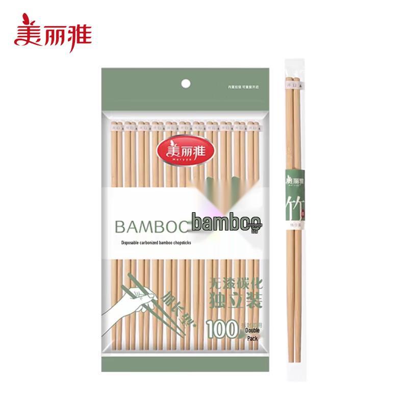 Individually Wrapped Carbonized Bamboo Disposable Chopsticks - 100 Pairs