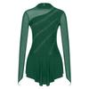 Damski brokatowy strasowy prześwitujący siateczkowy patchworkowy kombinezon do tańca figurowego z długim rękawem