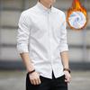 Winter Padded Thickened Warm Shirt Men Long Sleeve SlimFit Casual Business Dress Shirts Solid Color White Shirt