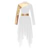 Womens Contrast Color Patchwork Dance Performance Costume Long Sleeve Asymmetrical Hem Dress