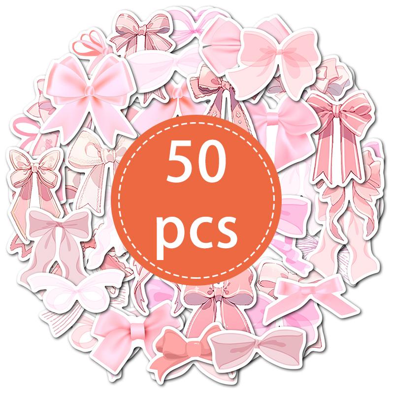 50PCS Pink Bow Stickers Cute Vintage Aesthetic Bowknot Sticker Vinyl Waterproof Girls Pink Decals for Water Bottle Laptop