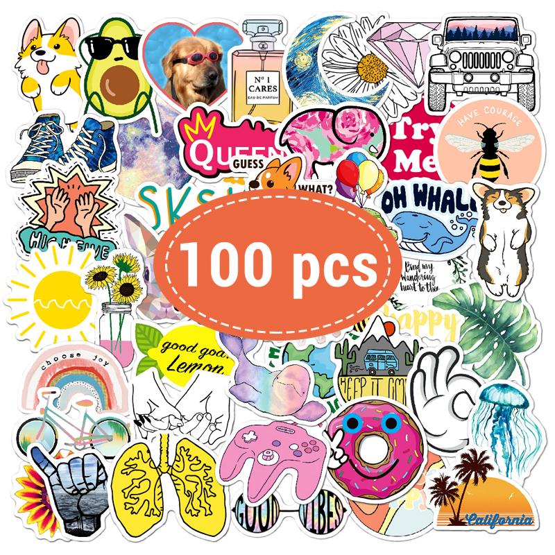 100PCS Cute Stickers Waterproof Vinyl Aesthetic Decals for Water Bottles Laptop Phone Journaling Scrapbook Journal