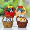 4Pcs Cartoon Basket Cats Plastic Miniature Sculpture Handcrafted Decoration Ornaments for Home Office Desk Shelf Display