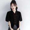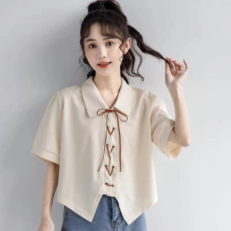 Apricot Short-sleeved Shirt for Women with Straps for Women In Summer New Waffle Shirt Polo Collar Short Top