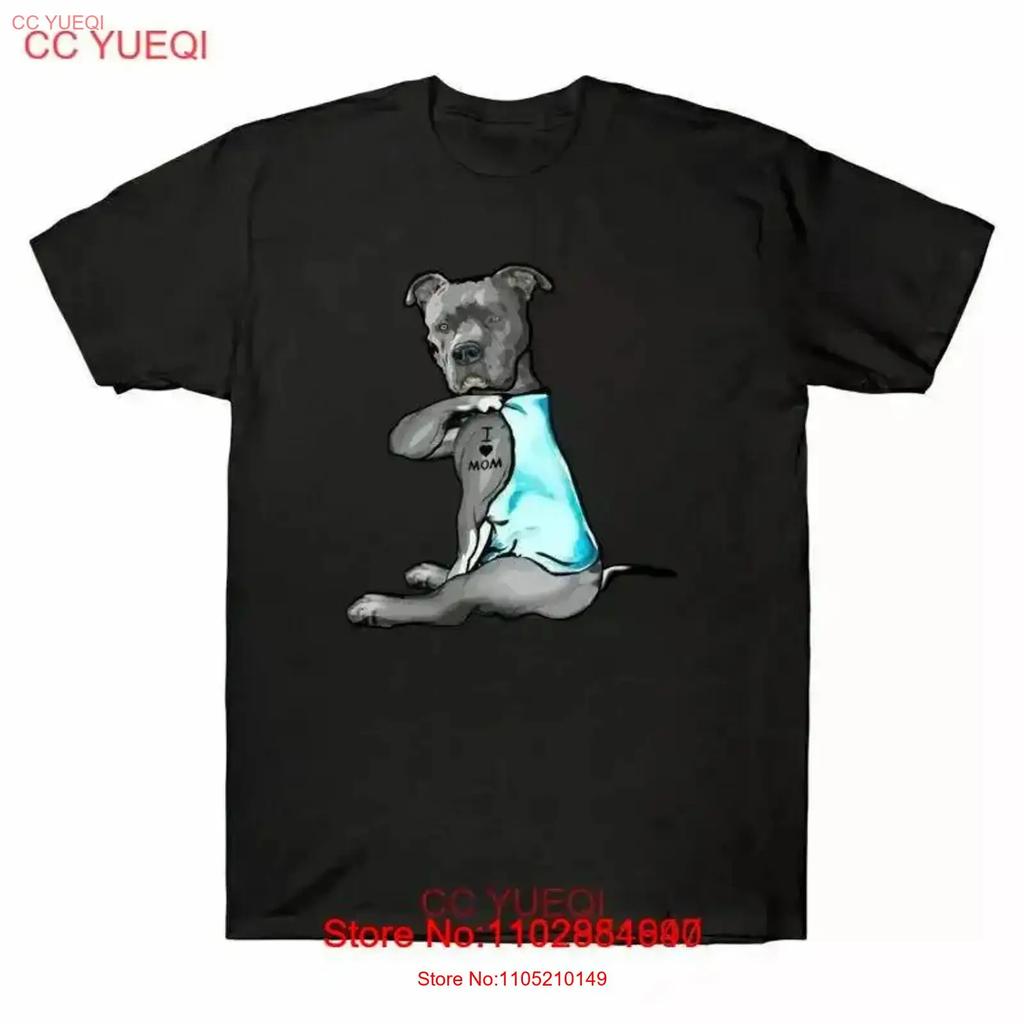 Funny Dog Pitbull I Love Mom Tattoo Men'S T Shirt Cotton New vintage Washed Unisex Casual graphic Comfortable Versatile Soft