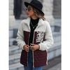 HNXC Casual Plush Women's Wear Long-sleeved Loose Round-neck Patchwork Zipper Animal Print Double-sided Fleece Coat