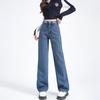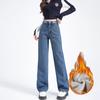 Aksamitne Pogrubione Jeansy Casualowe dla Kobiet na Jesień i Zimę Nowy Styl Luźne Spodnie z Szerokimi Nogawkami Przesuwane po Podłodze Spodnie Taty Proste Jeansy dla Kobiet