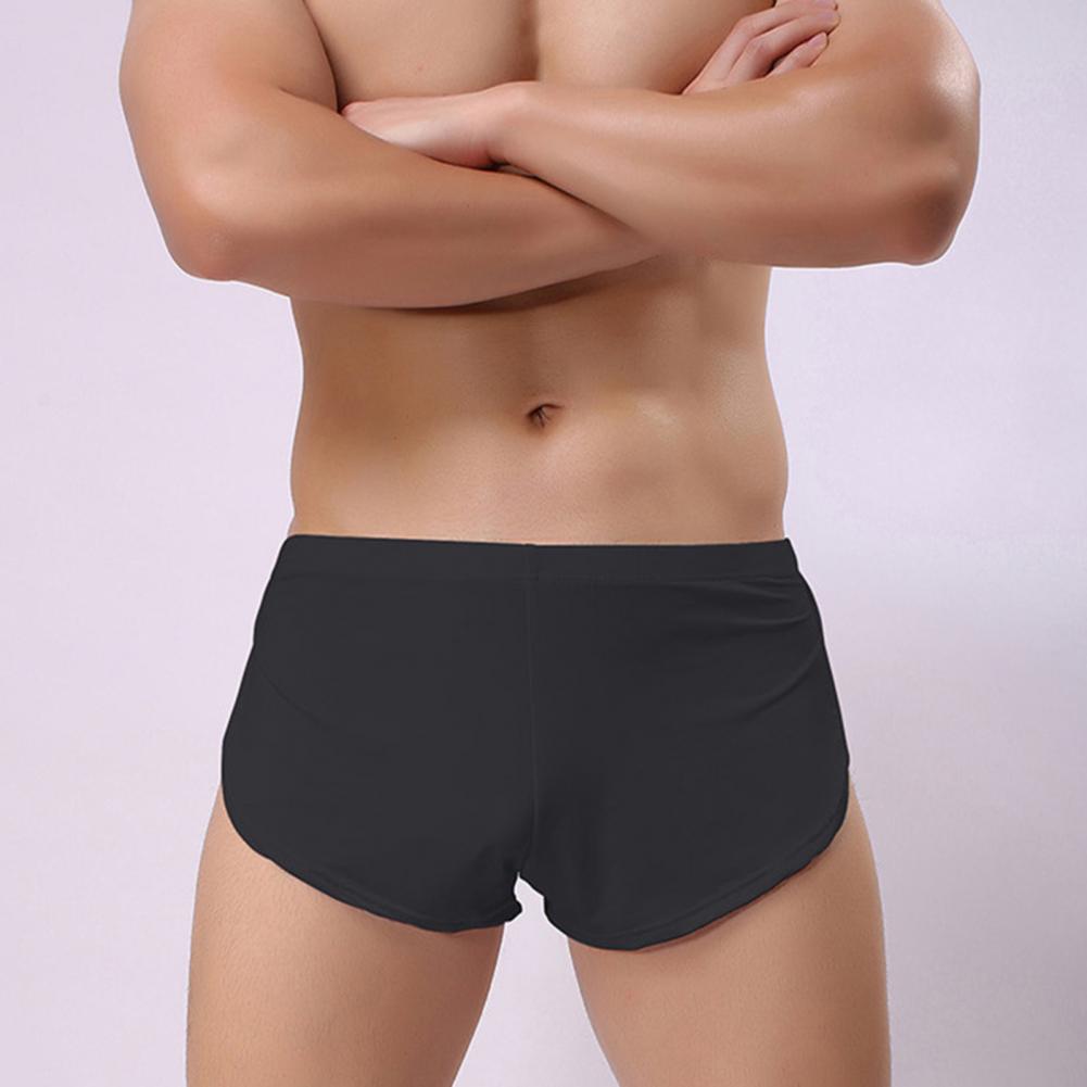 Men Sexy Boxer Underwear Low-rise Elastic Waistband Boxer Briefs Solid Color Full Hip Coverage Panties Boxer Shorts