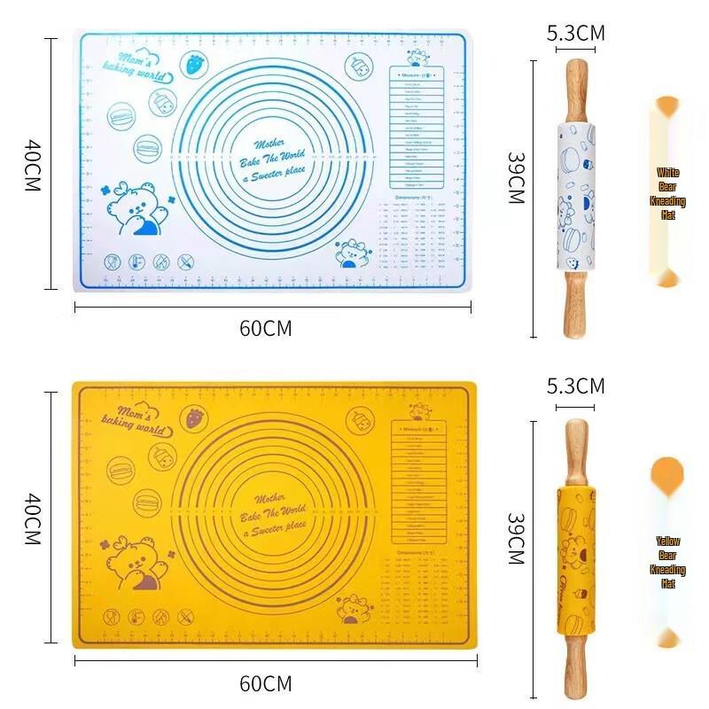 ZISIZ Silicone Kneading Mat & Rolling Pin Set