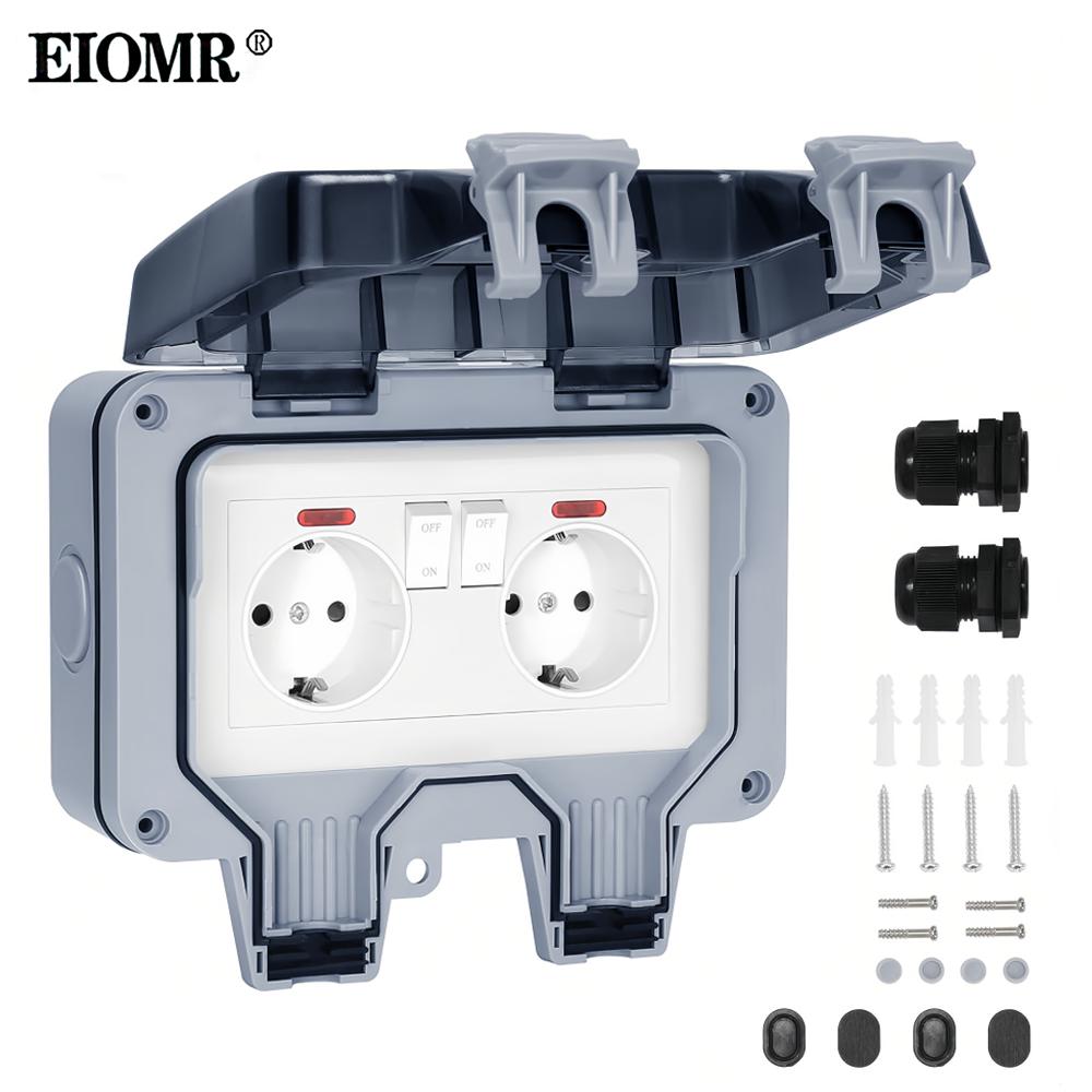 EIOMR Waterproof Socket Box, IP66 Rated Water EU French UK Universal Standard Power Plug Perfect for Outdoor, Bathroom, Kitchen