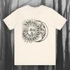 Koszulka Eclipse Retro Art Koszulka z tajemniczą grafiką Słońca i Księżyca Koszulki astrologiczne Koszulka unisex z krótkim rękawem z dżerseju