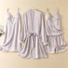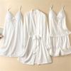 Wiosna Lato 4-częściowy zestaw piżamowy Piżama damska Bielizna nocna Seksowna koronka Kimono Szlafrok Koszula nocna Luźna jedwabna satyna Odzież domowa Odzież wypoczynkowa