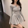 Sukienka z długim rękawem Sukienka damska Sukienka jesienna Nowy mały styl francuski Wewnętrzna z bazą Mała czarna sukienka