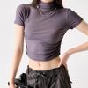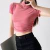 Dopamine Koszulka Bazowa dla Kobiet z Półgolfem Wiosna i Lato Odsłaniająca Pępek Krótki Rękaw T-shirt Seksowny Dopasowany Krótki Top