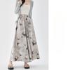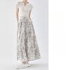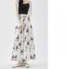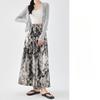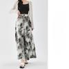 New Chinese Ice Silk Ink Painting Pants for Women's Summer New Pleated Half-body Casual and Versatile High Waist Drooping Wide-leg Skirt Pants