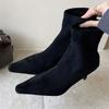 Fashion Punk Pointed Toe Women Ankle Boots Thin Heels Zipper Shoes Autumn Winter Elegant Chelsea Short Booties