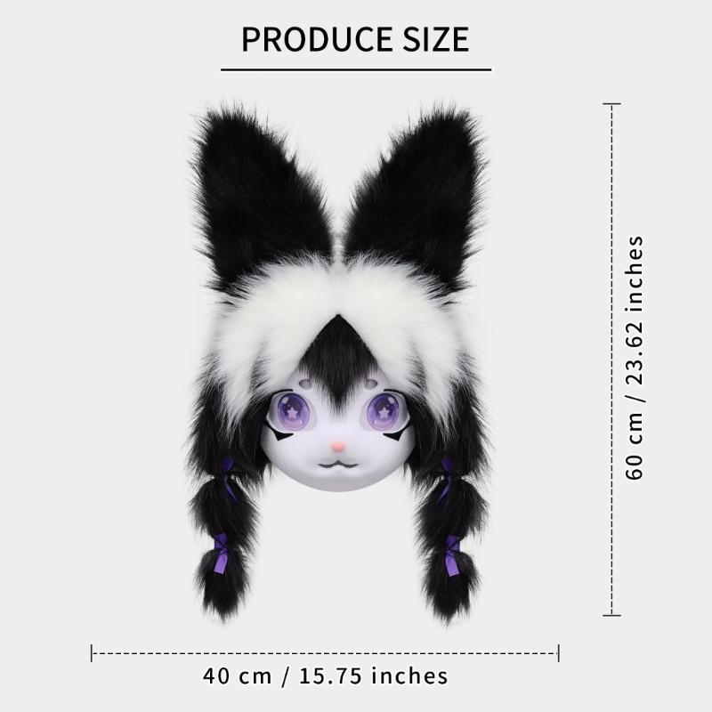 Futrzana Głowa Zwierzęcia Królik Fursuit Maska Wycięta Halloweenowa Bal Maskowy Cosplay Kostium Akcesoria Nakrycie Głowy Królika dla Dzieci Dorosłych
