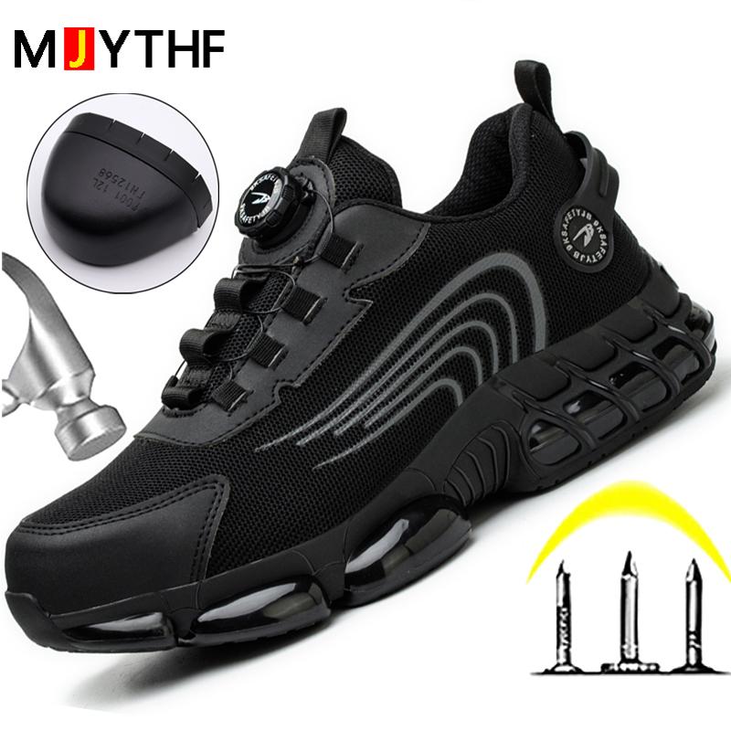 Rotating button Work Sneakers Safety Shoes Men Breathable Steel toe shoes Air cushion Indestructible shoes Puncture-Proof Boots