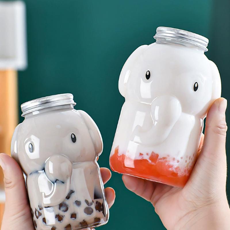 1Pc 350/500ML Cute Elephant Plastic Bottle Clear Milk Tea Bottle Water Bottle Portable Coffee Drinking Cup Drink Bottle