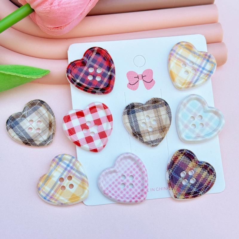 20Pcs Japanese Cute Plaid Heart Shaped Button Girls Wool Coat Cardigan DIY Sewing Decoration Women's Clothing Sewing Accessories