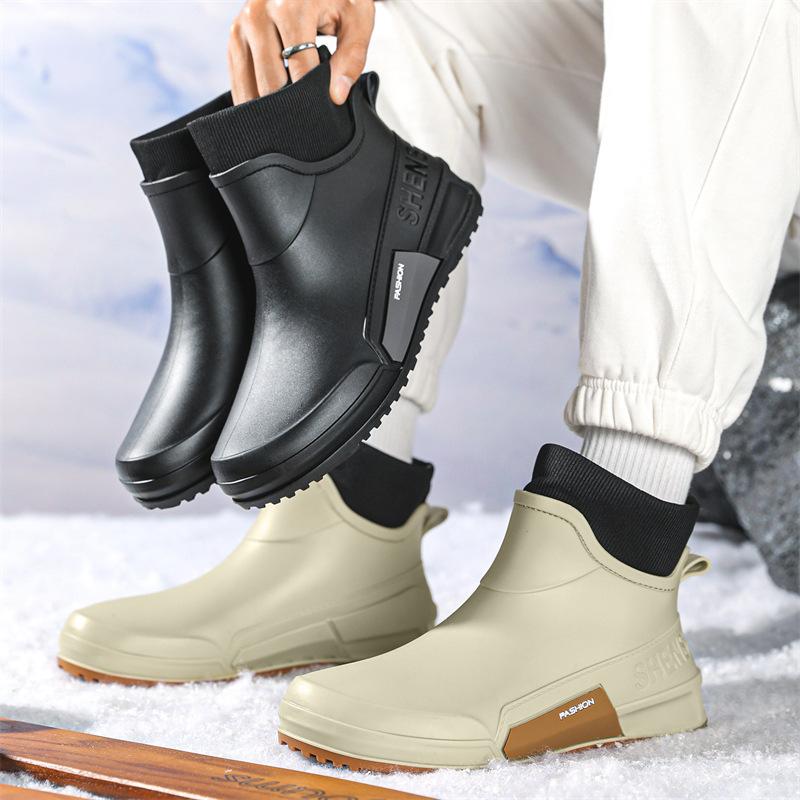 Wodoodporne botki do kostki na deszcz dla mężczyzn, buty męskie do pracy, do kuchni szefa kuchni, z podszewką z polaru, modne, na deszczowy dzień, antypoślizgowe, kalosze do ogrodu, na ryby
