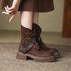 Buty na grubej podeszwie dla kobiet na jesień zimę niszowe retro brązowe krótkie botki modne proste wygodne wszechstronne damskie buty