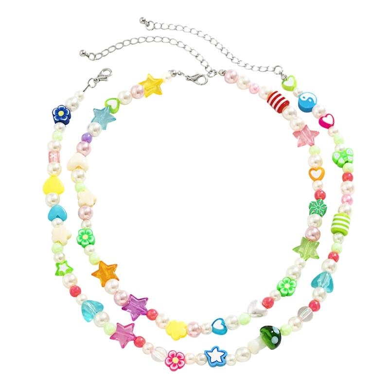 2-elementowy ręcznie robiony naszyjnik z koralików, kołnierzyk, łańcuszek na obojczyk, modny kwiatowy naszyjnik dla kobiet, akcesorium biżuteryjne hip-hopowe