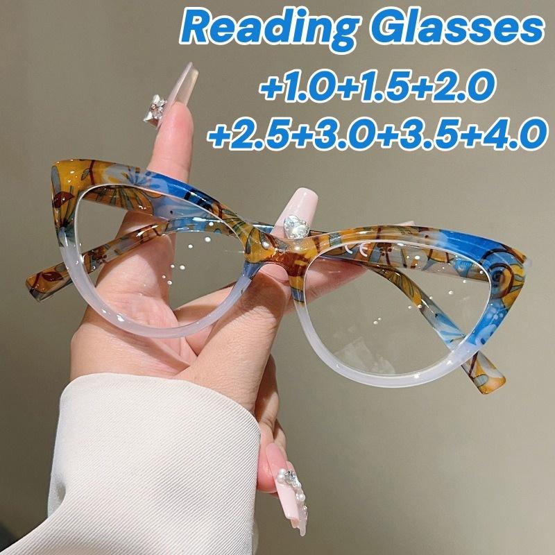 Irregular Pattern Contrasting Plastic Cat Eye Frame Reading Glasses Casual and Fashionable Anti Blue Light Presbyopia Eyeglasses