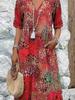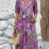 Modna Nowa Sukienka z Kwiatowym Wzorem i Wykończeniem, Dekoltem V, Krótkim Rękawem