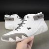 White PU Leather High Top Shoes Fashionable Versatile Simple High Quality Design Casual Lace Up Shoes for Both Men and Women