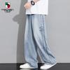 VANCAMEL Men's American Retro Loose Fit Straight-Leg Washed Jeans