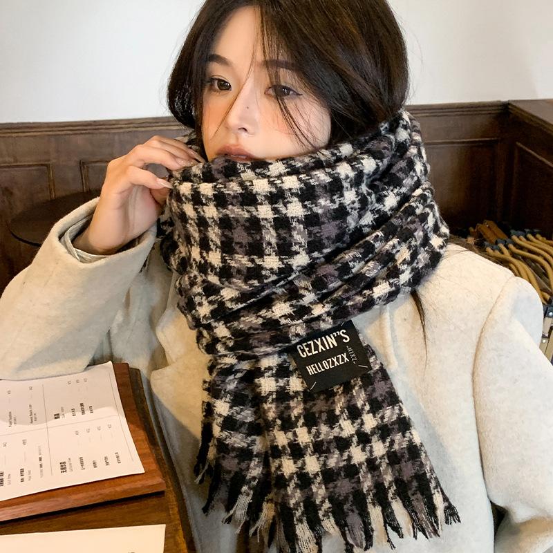 Scarf Winter couple scarf lengthened and thickened to keep warm, birthday gift for girlfriend, knitted plaid striped shawl