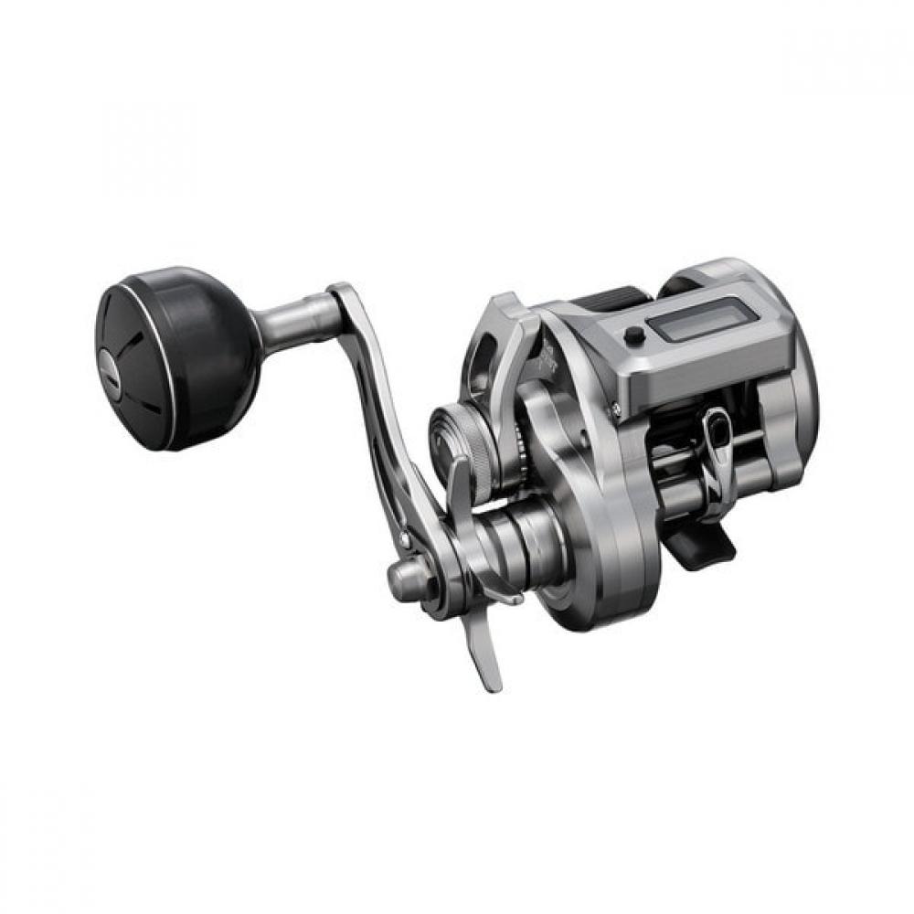 The Shimano Offshore Double Shaft Reel 25 Ocea Conquest CT 200HG (right) boasts a high-precision metal body and micro-module gear, providing a powerful yet smooth drive system, equipped with a digital counter and fall lever to aid in executing complex strategies. This model features a new fall lever and Infinity Drive to maximize sensitivity and lightness, while the redesigned line counter supports more intricate strategy development. High-durability clutches and X-PROTECT technology ensure robust and reliable performance.