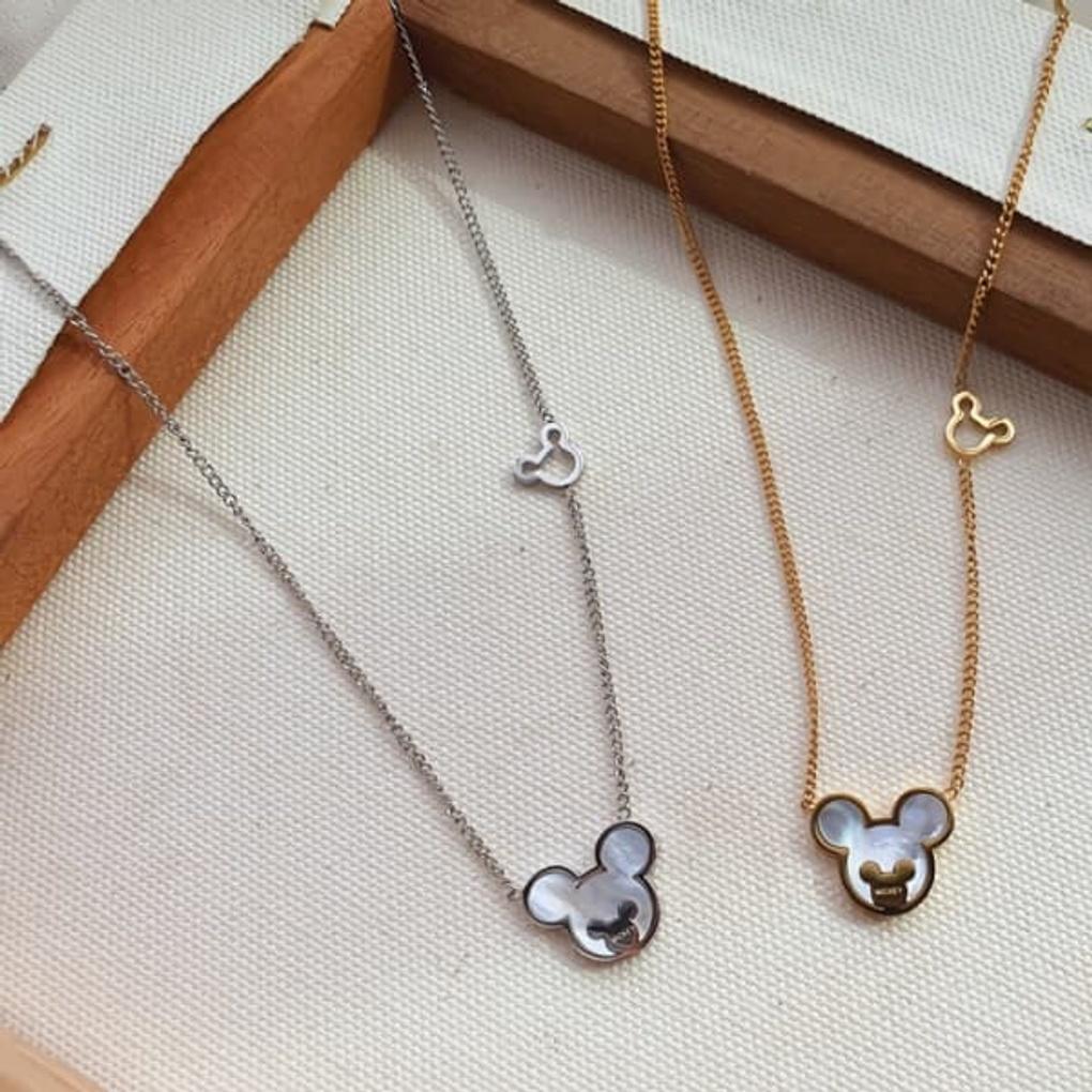 Women's surgical steel mother-of-pearl Mickey layered necklace