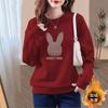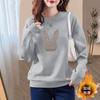 Women's Velvet Thickened Sweatshirt 2025 New Autumn and Winter New Round Neck Loose Bear Print Outer Top