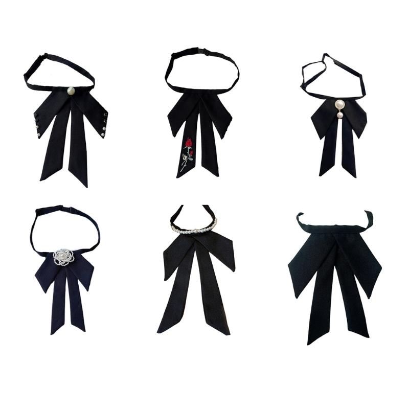 Damskie krawaty z muszką w stylu college'u, biżuteria z pereł, wstążka, krawat, mundurek szkolny, kokarda, muszka do kołnierzyka koszuli